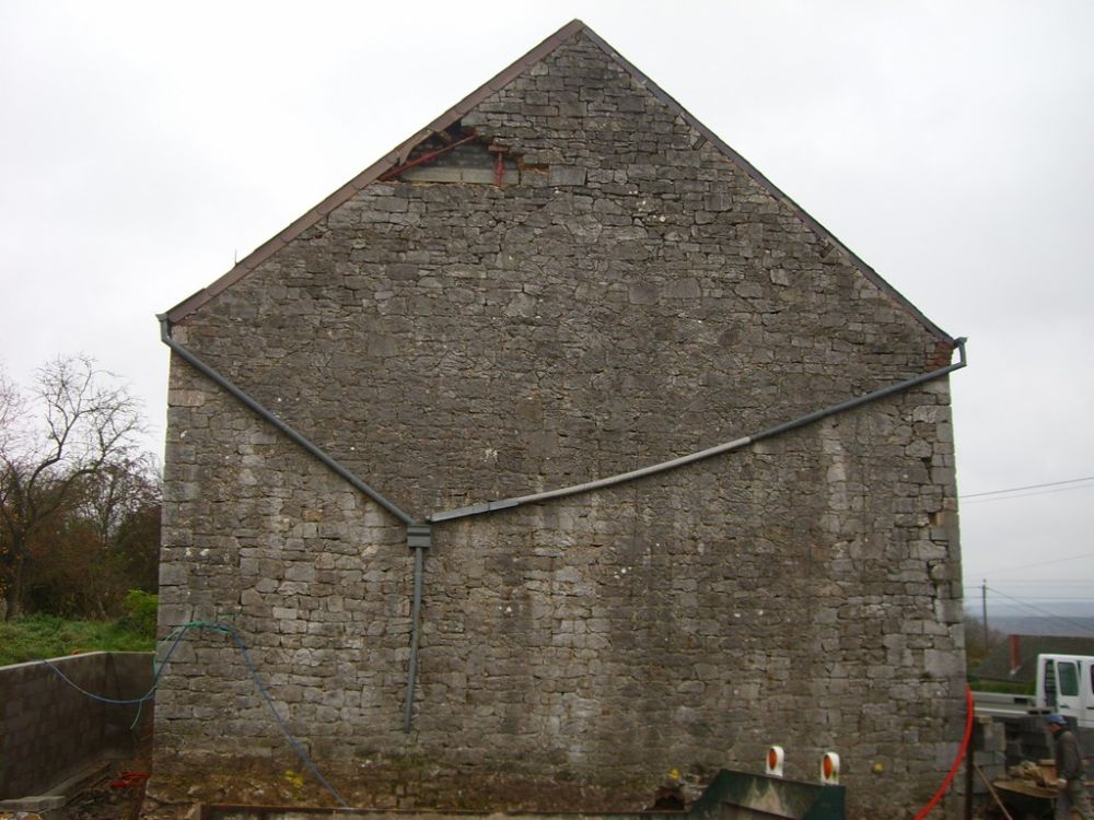 Transformation d'une grange en habitation unifamiliale. Cette grange totalement vide à l'intérieure et totalement fermée à l'extérieure, a été ouverte avec 11 nouvelles baies dans des murs d'épaisseur de 50cm. Ces baies ont été réalisées avec des linteaux coulés sur place ou des poutrelles métalliques posées sur des asselets.